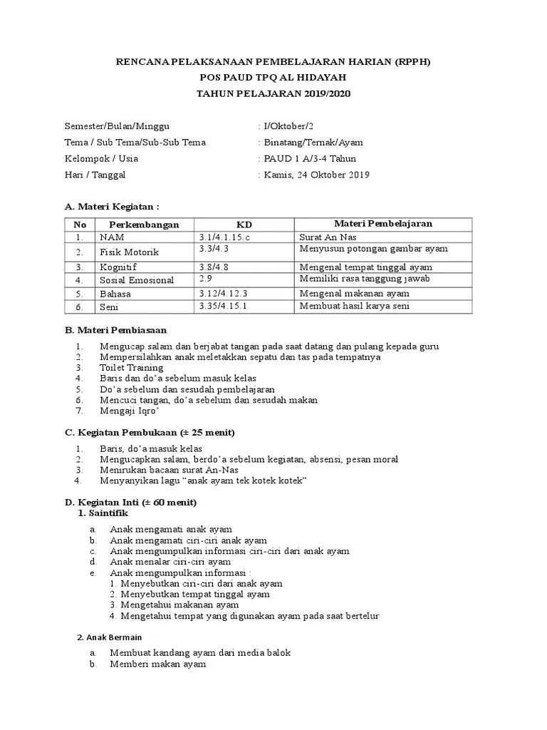 Download contoh rkh rpph paud tema diri sendiri tubuhku.